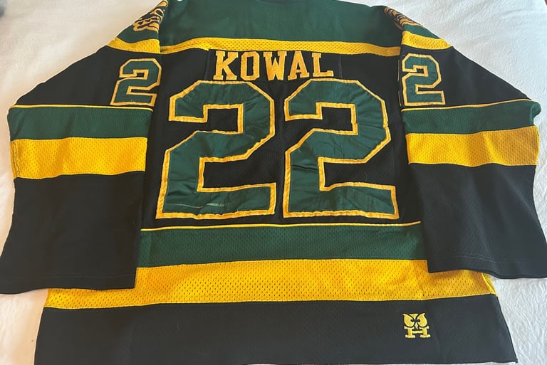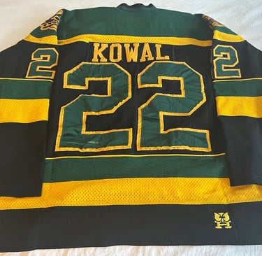 1992 - 1996 - Jack Kowal - Hooters mesh, nameplate on the back, "A" has been removed, was ironed on at some point, the WCHA logo has been embroidered and the shoulder patches arew sewn on