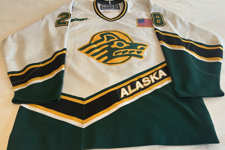 1991 - 1993 - Todd Green - Koronis mesh, nameplate on the back, the WCHA logo is screened onto the jersey