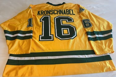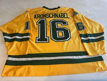 2004-2005 - Charlie Kronschnabel - Gemini dazzle cloth, name on the back, the WCHA logo has been embroidered, this one was obtained in person at the team auction, autographed inside on the nameplate