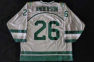2005-2006 - Chad Anderson - Gemini dazzle cloth, name on the back, the WCHA logo has been embroidered, Nye Frontier Classic patch on the front