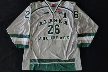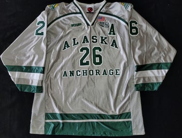 2005-2006 - Charlie Kronschnabel - Mission mesh, name on the back, the WCHA logo has been embroidered, the "A" patch has also been added, we believe this is from his junior season