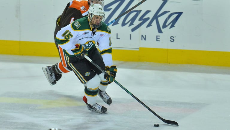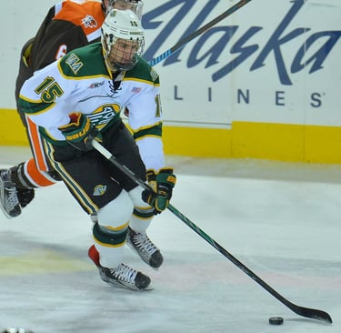 Black Bauer jersey, WCHA patch is on the front of the jersey