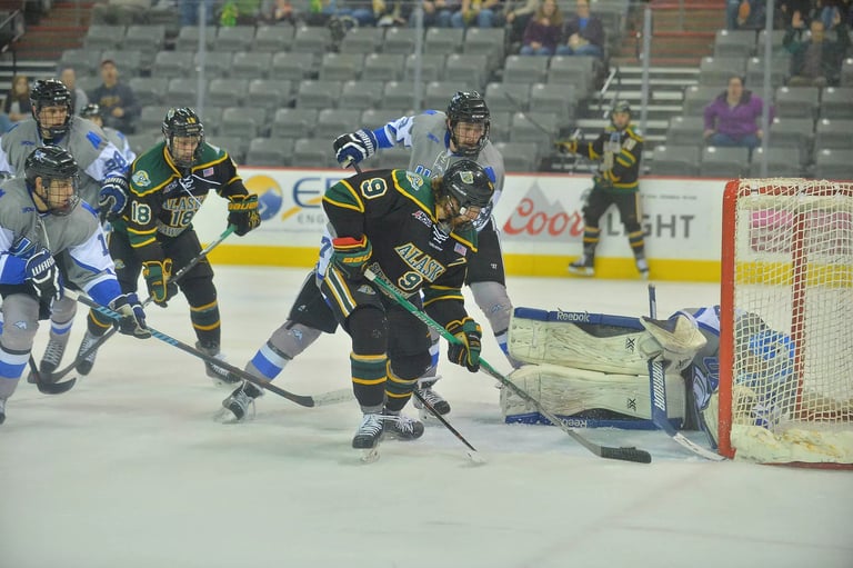 Bauer white jersey, UAA block letters on the shoulders, WCHA patch on the front