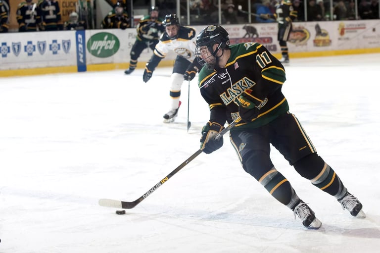 Bauer white jersey, UAA block letters on the shoulders, WCHA patch on the front